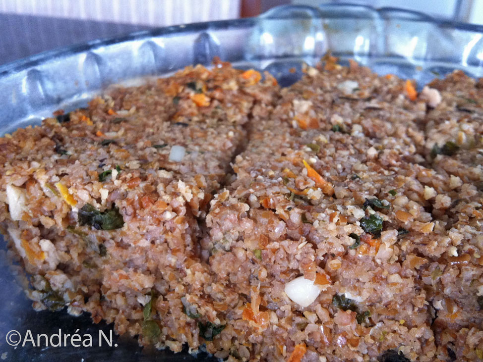Fazia um tempão que eu queria fazer quibe. Resolvi comprar o trigo e procurar uma receita vegana simples e gostosa. Achei num blog que eu adoro: o Vegetariano come o quê?