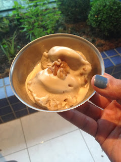 Misturei numa tigela o leite, a manteiga de amendoim, o sal, maple syrup e agave. Transferi para a máquina de sorvete. Deixei misturar por uns 15-20 minutos, até virar uma massa compacta, mas não muito sólida. Transferi de volta para a tigela e adicionei as nozes. Misturei bem com uma colher e levei ao congelador por pelo menos 1 hora. Pronto!
